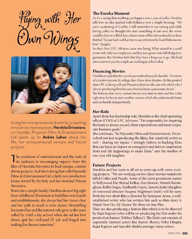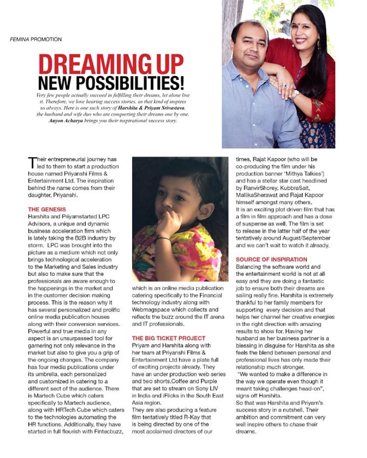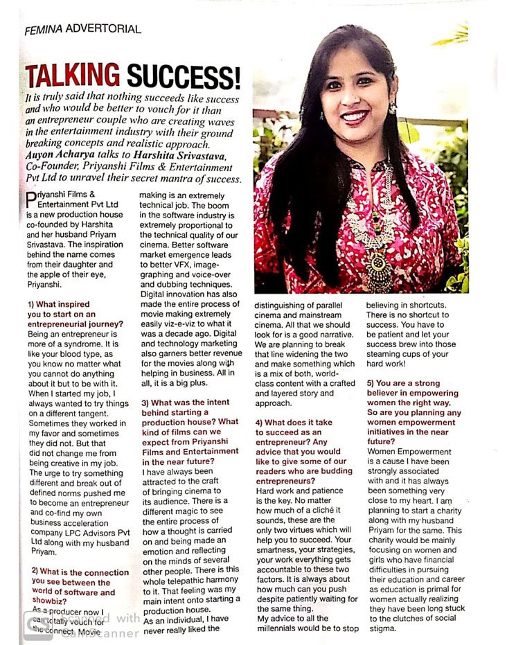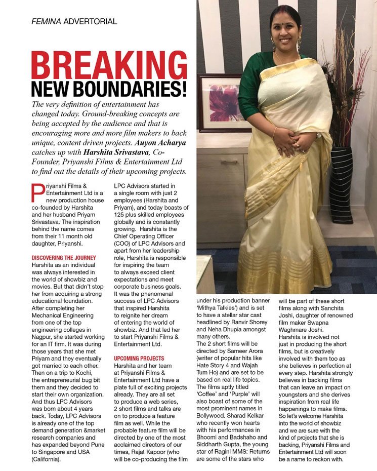 Priyanshi Films and Productions Pvt Ltd. was Co-founded by Harshita and Priyam Srivastava with the aim of discovering new talent in the movies industry along with delivering high quality content to people.